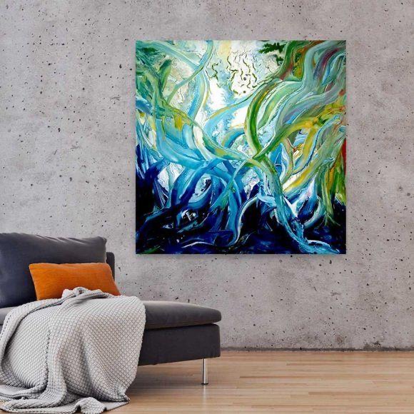 16×20 on stretched canvas title Geography beautiful colors and fluid movement. Hardware installed for immediate use, protected with high gloss varnish and comes with a certificate of authenticity.